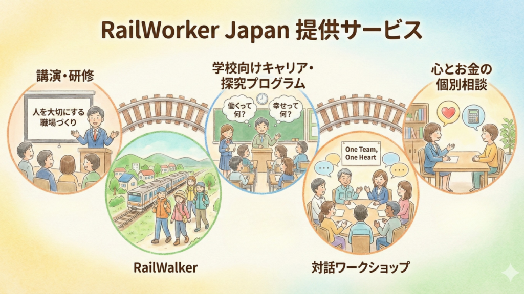 - 不登校・行き渋り支援:「各駅停車でもいい」「乗り換えてもいい」というメッセージで、子どもの心の居場所を作ります。